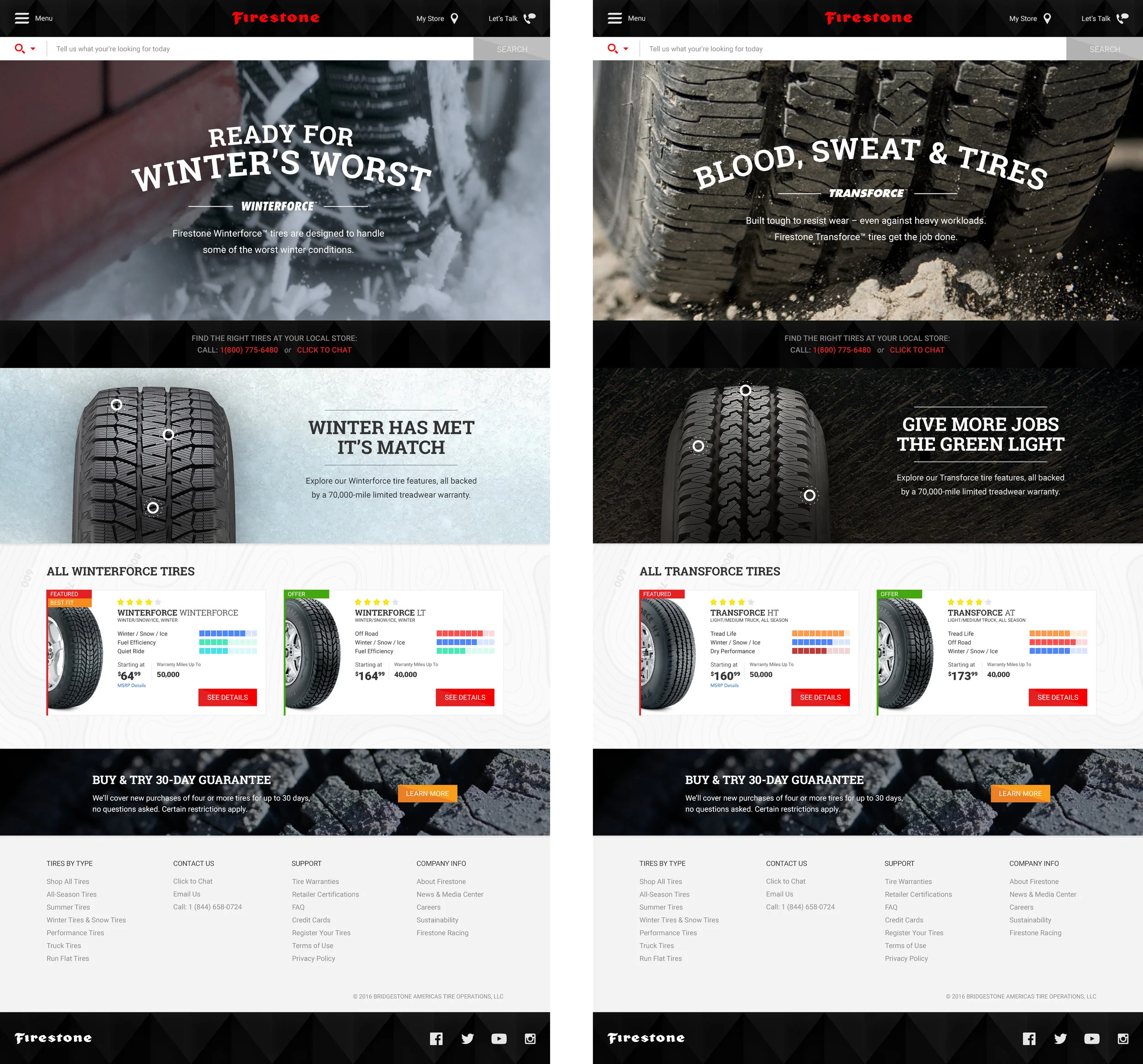 People who fit their vehicles with Firestone tires tend to be sticklers for detail. They want their hard-earned money to go far — and the products they buy to do the same. So when Firestone came to us for their site redesign, they asked for a site that: 1) Reinforced Firestone’s strong heritage of dependability and innovation, 2) Offered all the information a customer might need to make a decision, and 3) Launched as a commerce-ready platform that drove conversion on day one.