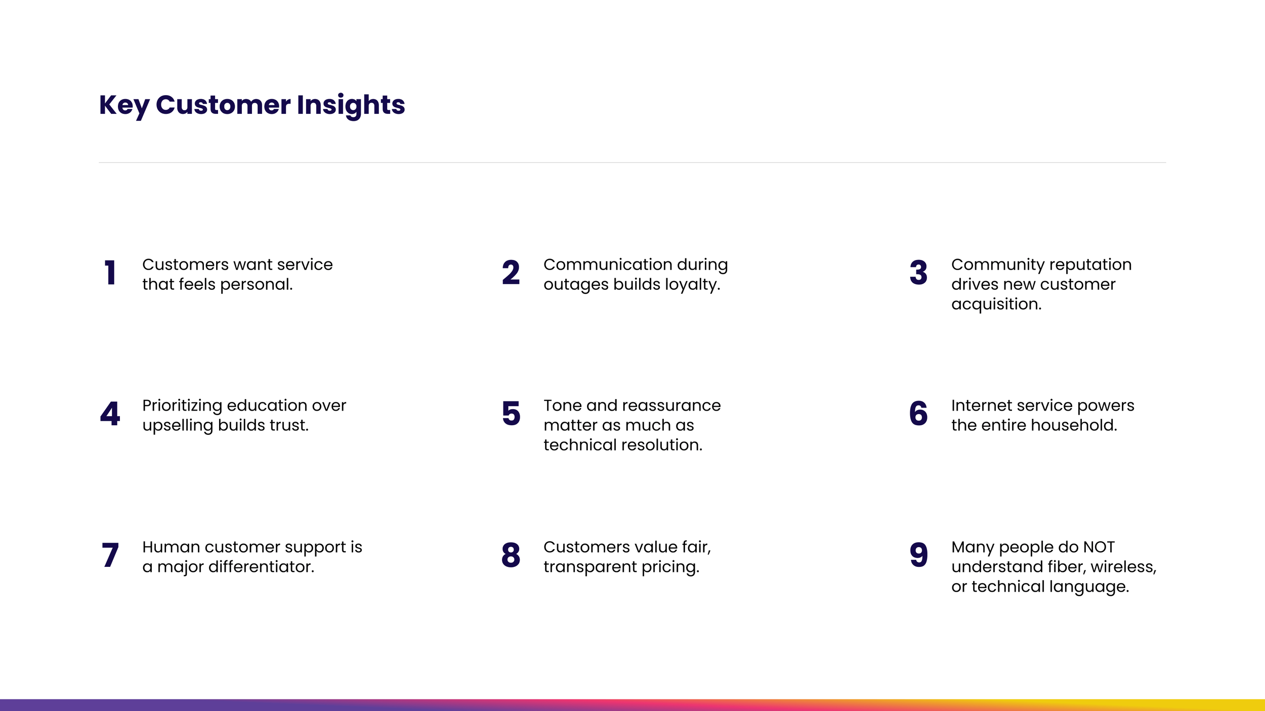 We set out to answer the questions that matter most: What do customers actually want from their internet provider? What builds loyalty and what drives them away? What does "local" mean in a world dominated by faceless telecom giants? What emerged was something the big players couldn't replicate: genuine local roots and providers who know their communities by name. This research set the foundation for everything that followed.