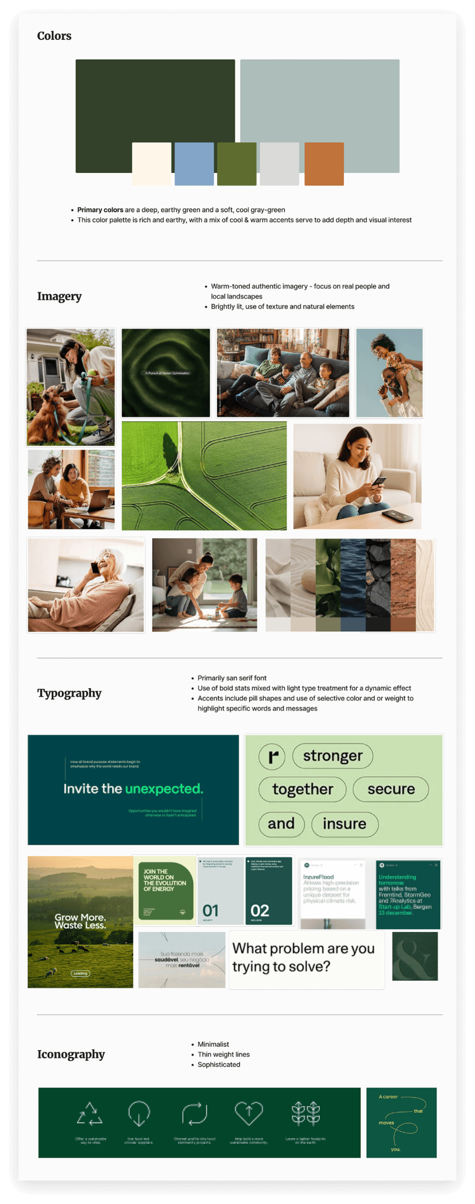 The style board expands the visual system with a wider color palette, complementary fonts, warm human-centric photography, and playful graphic elements pulled directly from the trademark to be used as accents. We also showed how the identity translates across real-world collateral, from company vehicles and employee badges to outdoor marketing pieces. Because a brand isn't just what lives on a screen, it's what people see in their day-to-day.