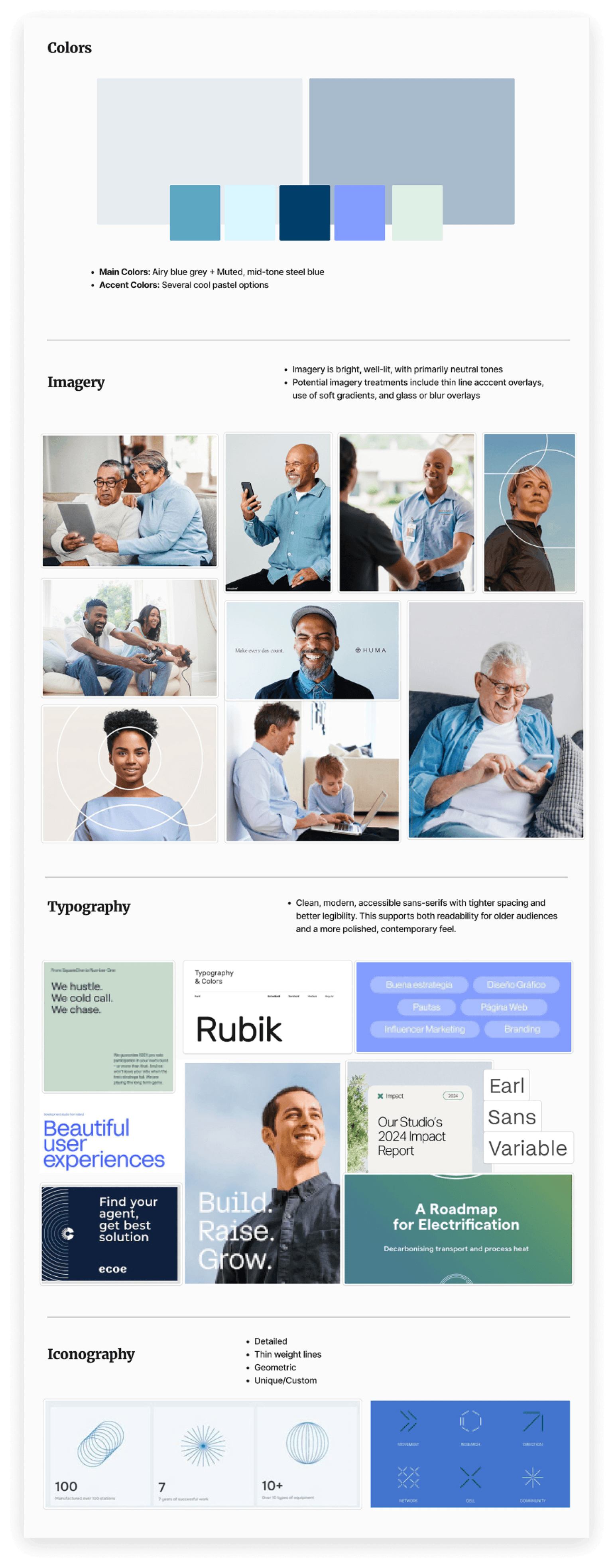 We developed a series of mood boards, each thoughtfully curated with different audience segments in mind, exploring a range of color palettes, typography pairings, imagery styles, and unique graphic elements — giving the Core Fiber team a tangible way to react, respond, and align before any formal design work began. Once the team identified what resonated most, we distilled those favorites into a unified visual foundation and confidently moved into the design phase.