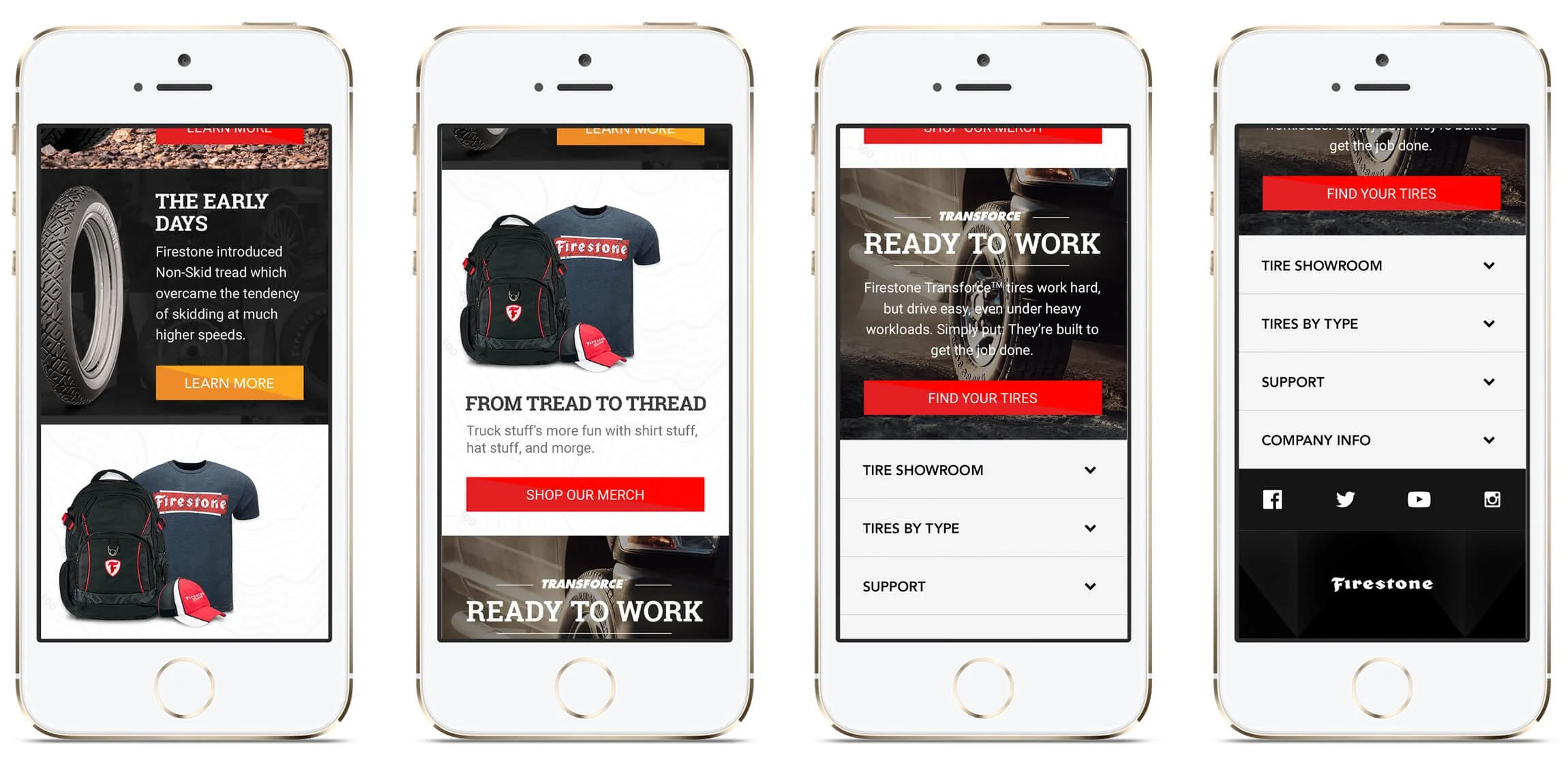 The design system was built to scale, extending seamlessly across Firestone's full family of tire brands, each with its own distinct identity and purpose.
